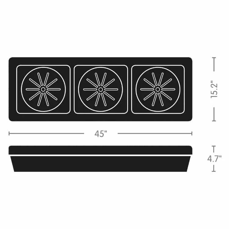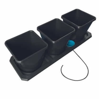 Auto3 XL allows you to irrigate three 6.6gal plastic XL pots in single tray and lid assembly that measures just 45โ x 15.2โ. All fed by a single AQUAvalve5.