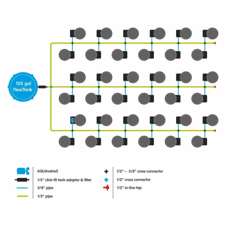 As with all of our systems the Spring Pot System is easily extended so many pots can be linked to a single reservoir. The pots and trays can be easily moved at will, if the plants grow too large they can be spaced further apart with ease. Once set up with a water and nutrient filled reservoir this extremely versatile, gravity-fed system will run automatically. It will completely take care of all your plants needs without the need for pumps, timers or intensive maintenance.