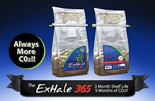 The ExHale 365 is a self-activated version of the Original CO2 Bag. The 365 will provide a 4×4 foot or 128 cubic foot space with CO2 for 9 months of which 6 months are peak production. With 3 months of shelf life and 9 months of CO2, that makes a year. That’s the ExHale 365! The ExHale 365 comes with separation seal that doubles as a hanger after activation.