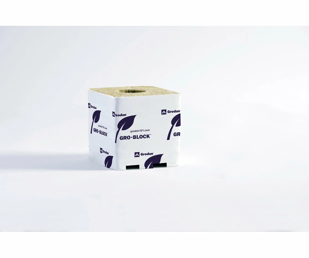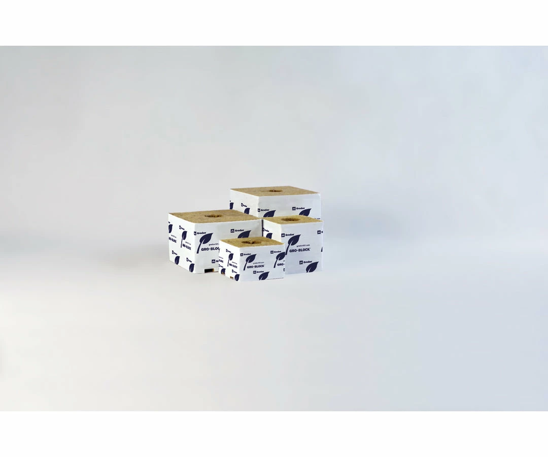 Grodan Blocks –ย Grodan Delta blocks are the most uniform blocks available on the market. They feature improved grooves at the base to promote better drainage. They are available in a large assortment of sizes and configurations to suit all types of plants. These growing blocks are used for direct sowing or “blocking on” of Macro and Multiblock raised plants. AO 36/40 plugs fit well into the hole sizes provided by the blocks. The blocks can then be placed on top of a slab to provide for a larger growing volume. Hugo is the largest of the growing blocks. It provides enough growing volume to support a larger plant, so it does not need to be placed on top of a slab.