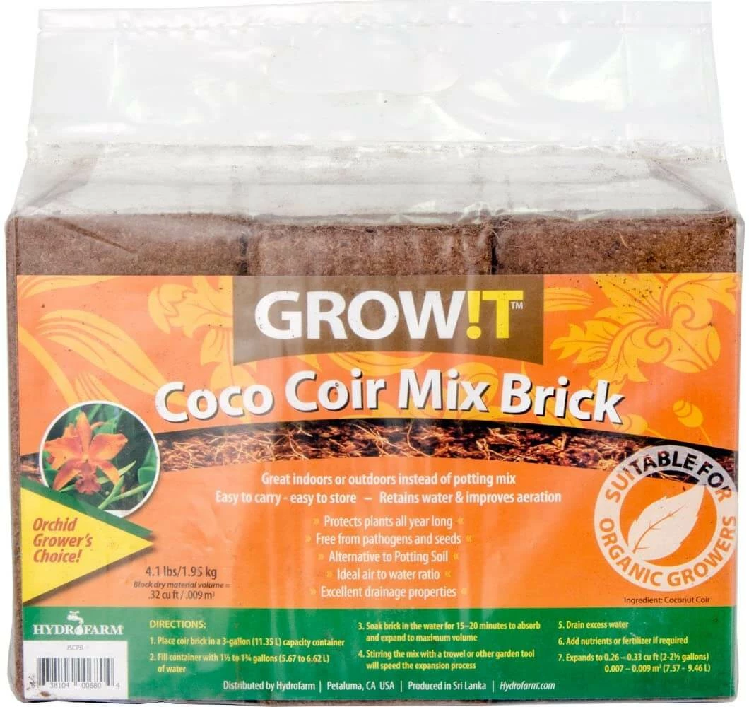 Give your plants a sturdy growing structure with GROW!T’s CoCo Coir Bricks. CoCo Coir Bricks support your plants all year long. The bricks, in a mix or chip format, do double duty: