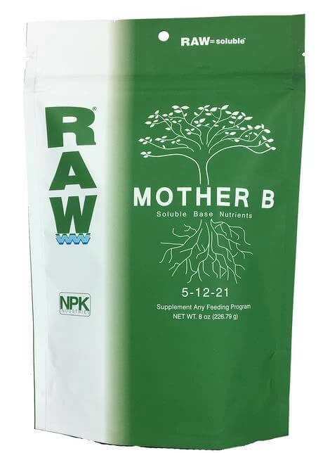 RAW MOTHER B is one of a two-part, commercial base nutrient formulated specifically for mother plants. This professional grade base with chelated micronutrient is designed for hydroponic/soil/soilless cultivation. RAW MOTHER A/B base nutrients provide an ideal foundation for vigorous, productive mother plants.