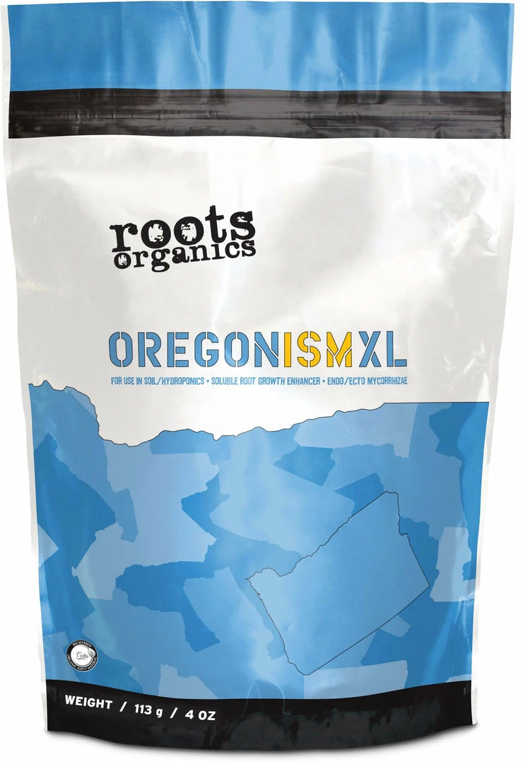 Roots Organics OregonismXL root growth enhancer helps to increase nutrient availability and uptake, encourages vigorous root systems, and helps container grown plants to resist stress. OregonismXL increases root mass and size by colonizing the root system with symbiotic fungi and bacteria. The fungi extend their network into the surrounding plant rhizosphere, massively increasing plantsโ ability to uptake water and vital nutrients. Increased root surface area and enhanced nutrient uptake help to boost plant productivity and yield. Roots Organics OregonismXL is a custom blend of Vesicular Arbuscular Mycorrhizae (VAM), with Bacillus bacteria, Pseudomonas bacteria, and humic acid. OregonismXLโs fungi and bacteria are specifically selected for tolerance to environmental extremes.